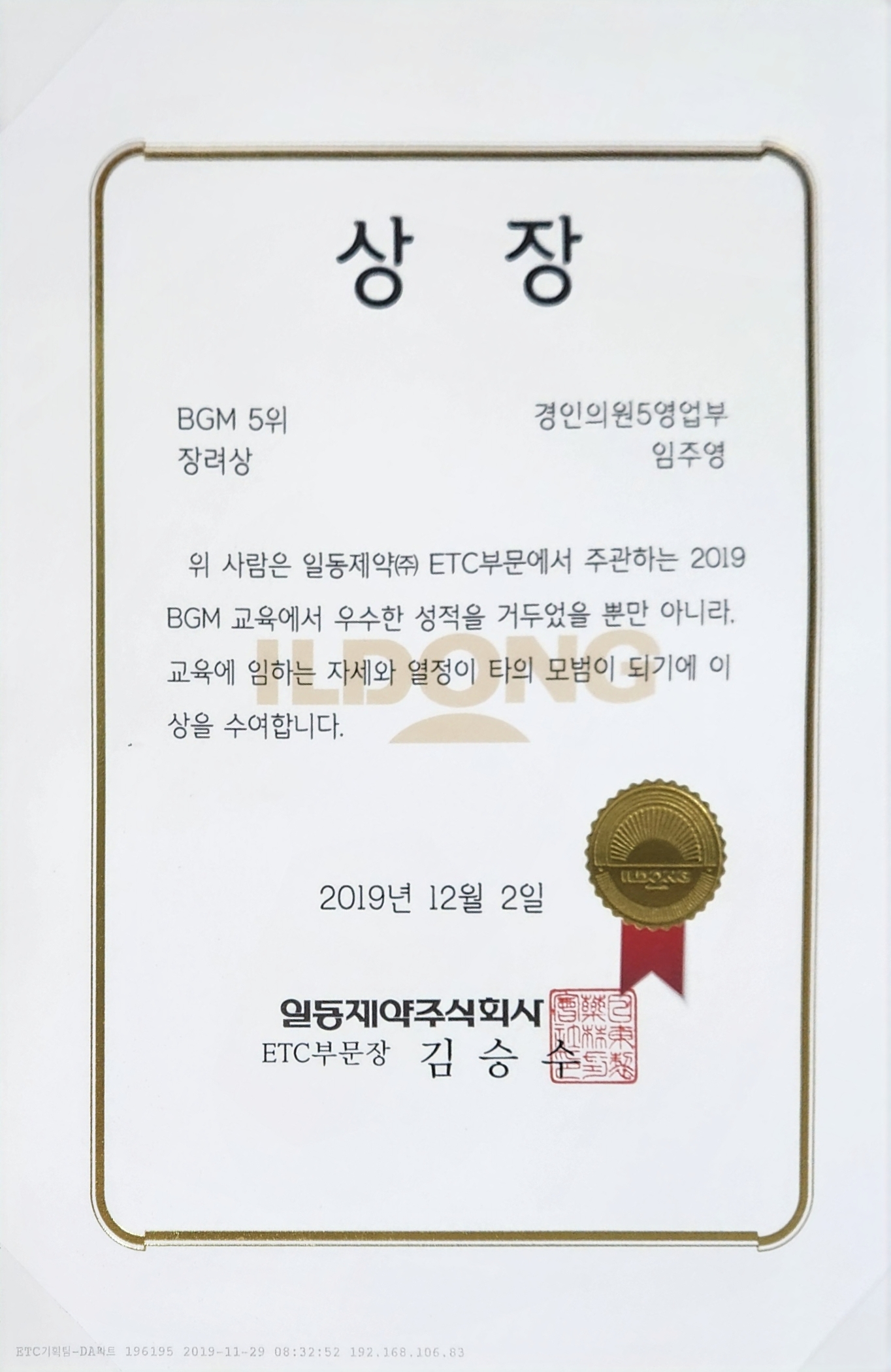 G1(사원) → G2(대리) 특별 승진, Top 3% 성과 달성(190명 중 7위)